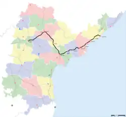 The Visakhapatnam–Secunderabad Duronto Express has Two stops between the two cities to cover the distance of 701 km (436 mi) in 10 hours, 15 minutes. It is the 2nd fastest train between the two cities.[4] The train has a commercial stops at Vijayawada Junction and Guntur Junction. From Oct 1st 2021 it is diverted via Guntur Junction to increase the connectivity between Guntur and Vishakapatnam.[5]