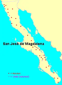 The Visita de San José de Magdalena was a Catholic visita located between Mulegé and Santa Rosalía in Baja California Sur, Mexico. The visita was founded by Dominican missionary Joaquín Valero in 1774 as an extension of Misión Santa Rosalía de Mulegé.
