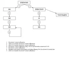 Visna Maedi virus is a retrovirus meaning its genome consists of a (+)RNA that undergoes reverse transcription and then is integrated into the host's genome after infection. This integration is what leads to VMV's lifelong persistent infection.[7] VMV has a long incubation period. During the initial outbreak among sheep in Iceland, there was no sign of clinical disease until six years after the importation of the Karakul sheep, which brought the virus from Germany to Iceland.[18] Susceptibility to infection also increases with a higher level. VMV infects cells of the monocyte lineage, but only replicates at high levels when the monocytes are more mature/differentiated.[19] Infected differentiated monocytes, also known as macrophages, will continuously present VMV antigens inducing T-lymphocytes to produce cytokines that in turn induce the differentiation of monocytes.[7]