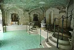 The Great Miami Hurricane of 1926 devastated the greater Miami area including Vizcaya. The estate's historic rose garden was destroyed after saltwater seeped in, decimating the roses and preventing growth thereafter. Vizcaya's horticultural team partnered with the Tropical Rose Society of Miami to help bring some roses back to Vizcaya's gardens 100 years later. However, the historic rose garden, now known as the fountain garden, has not been returned to its former glory.[33] One of Vizcaya's outdoor restoration project challenges included the estate's swimming pool grotto, built in 1916. The pool is only one of two public places in the world to feature a surviving mural by Robert Winthrop Chanler, a prominent American artist. The ceiling mural was designed in 1916, depicting an underwater fantasy scene filled with creatures and marine life. Shells are embedded into the plaster mural of the scene.[34]