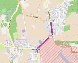 Voivodeship Road 101 (Polish: Droga wojewódzka nr 101, abbreviated DW 101) is a former voivodeship road. It ran through the Pomeranian Voivodeship from voivodeship road 100 in Pierwoszyno to Kosakowo where there is the new international airport.[1] The route was concurrent with voivodeship road 100 on its entire length.