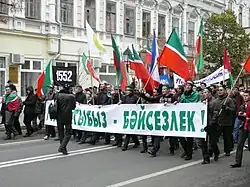 The long and multifaceted history between these two ethnic groups can be traced back to the times of Volga Bulgaria and the Golden Horde. Tatars have been a part of Russia since the 1500s. Later, among Tatars, there is both people, who are against Russia, and those that believe they are an integral part of it. Among Tatar separatists is the ethnic nationalist, founder of independence party İttifaq, Fauziya Bayramova. In 2018 Rafis Kashapov, a Tatar activist founded in Kyiv a separatist movement called "Free Idel-Ural".[119] Famous pro-Russian examples include the Grand Mufti of Russia, supporter of Eurasianism, Talgat Tadzhuddin. He and another Tatar Mufti Kamil Samigullin have supported the Russian invasion of Ukraine.[120][121][122][123][124] Head of Tatarstan, Rustam Minnikhanov stated in June 2023 that "Tatarstan fully supports the Supreme Commander-in-Chief, President of the country Vladimir Vladimirovich Putin; the most correct thing now is to stand together against those who pose a threat to Russia and its multinational people".[125]
