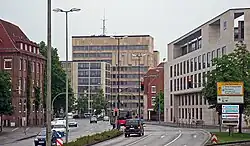 ![]() View of the Gütersloh town hall, on the right the Volksbank headquarters built in 2004 | |