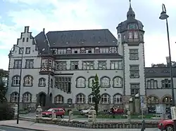 It was built with funds from the Carl Zeiss Foundation by Arwed Roßbach and opened in 1903. Supported by the physicists Ernst Abbe and Siegfried Czapski who worked at Zeiss, as well as the publisher Eugen Diederichs, the drawing school of the painter Erich Kuithan existed here from 1903 to 1908. In 1907, the Jena Volksverein showed a selection from the 1st Graphic Exhibition of the Deutscher Künstlerbund in Leipzig in the Volkshaus.[1]