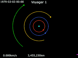 - ^ Horizons Archived October 7, 2012, at the Wayback Machine, JPL Solar System Dynamics (Ephemeris Type Elements; Target Body: Voyager n (spacecraft); Center: Sun (body center); Time Span: launch + 1 month to Jupiter encounter – 1 month)