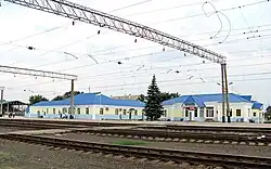To the north the city is passed by Debaltseve–Zverevo railway line. The train station Krasna Mohyla is located within the city limits.[2]
