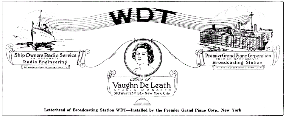 - ^ "Radio Station WDT Opens", The Music Trades, June 16, 1923, page 4.