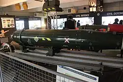 ![]() WE.177 nuclear bomb (training example) at Explosion Museum of Naval Firepower | |