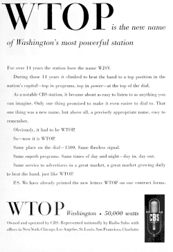 - ^ "WJSV Becomes WTOP Beginning Today", Washington, D.C. Evening Star, April 4, 1943, page E-3.