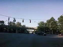 Wabash Avenue actually begins as a stub near the Reisterstown Road Plaza. The stub exists where a longer road was intended as part of the original plans of Interstate 795. This portion of I-795, which would have run through historic Sudbrook Park before reaching the city, was fought and ultimately cancelled as a result of complaints from Sudbrook Park residents.[1] This led to the cancellation of all parts of I-795 within the city, and its truncation to I-695 (the Baltimore Beltway) near the suburb of Pikesville. Still, the road was constructed as a boulevard, and the Metro Subway was constructed along an overhead track directly parallel to the road.[2] Three stations of the Metro system (Reisterstown Plaza, Rogers Avenue and West Coldspring) are located along Wabash Avenue.