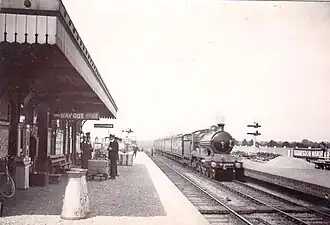The station was first opened as Waddesdon Manor by the Metropolitan Railway on 1 January 1897.[1] "Manor" was dropped from the name on 1 October 1922.[1] It was the first station north of Aylesbury on the section of the Metropolitan Railway between Aylesbury and Verney Junction.