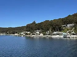 It has a general store, which is also the local post office. It is a thin sliver of around 200 houses between the bay and the bush (Bouddi National Park). Historically it was also known as Wagstaffe Point. In aboriginal dialect the point is called Kourang Gourang. A ferry service operates between Wagstaffe and Palm Beach (via Ettalong). Travel time is 30 minutes.