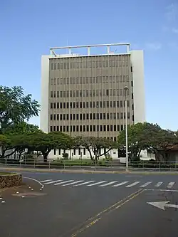 Within the historic district is the Kalana O Maui County Building of Maui, which is situated between the Courthouse and Old Police Station. The nine-story building, built in 1972, occupies a site formerly occupied by a firehouse and jail.[6] It is listed as part of the historic district as a non-contributing property.[4]