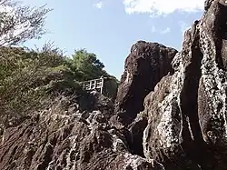 The key attraction at the property is the large and unusual fluted basalt rock formations.[4]