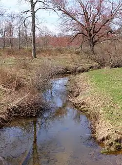 There are pools on Walker Run near the bridge carrying North Market Street over the stream. These pools are surrounded by trees.[7] Walker Run has surrounding wetlands in some places.[8]