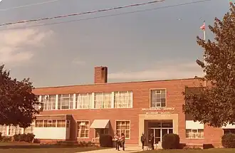 Post-World War II, on 5 September 1950 the new Wallaceburg District High School was opened at the present location on Elgin Street under the custodianship of Principal W. Clair F. Weir and eighteen staff members.[2] The new gymnasium became home to the Wallaceburg Basketball League.