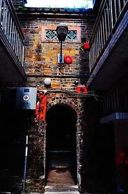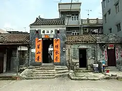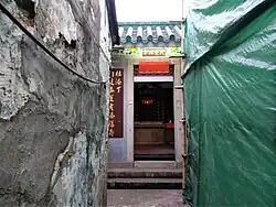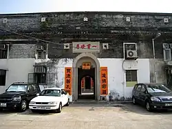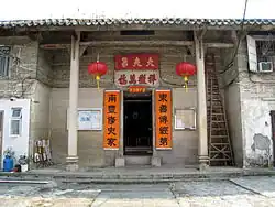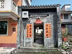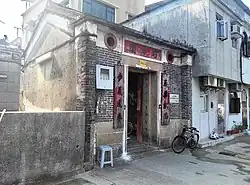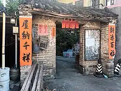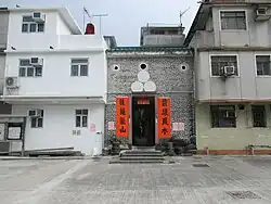Tin Sam was founded during the late Ming dynasty.[24] Historic buildings in the village include the Choi,[25][26] Leung[27][28] and Liu ancestral halls,[25] and the Entrance Gate, built during the Qing dynasty.[29] | ![]() |