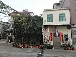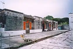 Walled villages in Hong Kong are characterised by row houses arranged in a square or rectangular block, where the parallel rows of houses are separated by narrow lanes.[2]