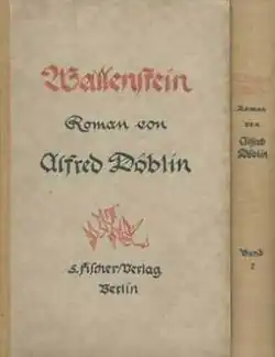 Wallenstein is a 1920 historical novel by German author Alfred Döblin. Set in Central Europe during the Thirty Years War, the novel's plot is organized around the polar figures of Ferdinand II, Holy Roman Emperor, on the one hand, and Albrecht von Wallenstein, on the other. Döblin's approach to narrating the war differed from prevailing historiography in that, rather than interpreting the Thirty Years War primarily as a religious conflict, he portrays it critically as the absurd consequence of a combination of national-political, financial, and individual psychological factors.[1] Döblin saw a strong similarity between the Thirty Years War and the First World War, during which he wrote Wallenstein.[2] The novel is counted among the most innovative and significant historical novels in the German literary tradition.[3] In large part, contemporary critics found the novel to be difficult, dense, and chaotic—a reception Döblin discussed in his 1921 essay "The Epic Writer, His Material, and Criticism"—yet writers such as Lion Feuchtwanger, Franz Blei, and Herbert Ihering praised Wallenstein for its formal innovation, poetic language, epic scope, and bold departure from other German writing of the time.[4][5] Despite the novel's difficulty, the critical consensus was that Wallenstein was a major achievement and confirmed the promise seen in Döblin's earlier historical novel, The Three Leaps of Wang Lun.[6]
