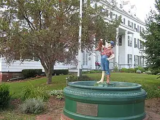 Wallingford is a small agricultural community in the Otter Creek valley of central Vermont, 10 miles (16 km) south of Rutland. It was settled in the 1770s, with its main village established on Roaring Brook, a tributary of Otter Creek. It developed as an agricultural area, and as a stop on the north–south stagecoach route, now US 7. The village center developed as a commercial center, serving the area farmers, and housed local industries such as sawmills, tanneries, and a blacksmith. The stage route was the only significant road in the village, with School Street (Vermont Route 140) emerging later as a major cross street, running east–west north of Roaring Brook. In 1835, Lyman Batcheller opened a pitchfork manufactory, which expanded significantly after the railroad arrived 1852. These industries declined in the early 20th century, as did agriculture, which has been partially supplanted by the summer tourist trade. Most of the village's development after 1920 has taken place on side streets, leaving its Main Street with a largely turn-of-the-20th-century appearance.[2]
