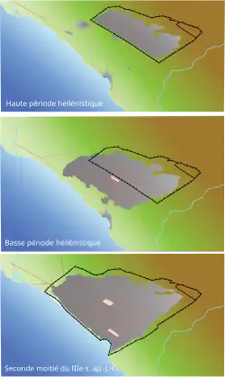 The first fortification of the newly built city of Cassander, which played an important role, dates back to the 3rd century BC. The Roman conquest (167 BC), which brought Roman peace, made the walls weak, so around the middle of the 1st century they were already in ruins.[2]