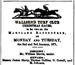 Note the "Christmas Races" on 2nd and 3rd January, 1871 in spite of the recent weather they are planned for the Maryland Racecourse as the Committee has decided to "soldier on".[1]