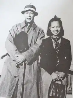 After Japan invaded China and occupied Shanghai in 1937, Wang Renmei and Jin Yan fled to Hong Kong,[14] and then to remote Kunming when Hong Kong also fell to the Japanese. Like other war refugees, they struggled for survival. Because of her knowledge of English, she found a job as a typist at the U.S. army base in Kunming.[16] In the last few years of the war Wang Renmei and Jin Yan were often separated for months at a time, and the couple divorced in 1945. The divorce was amicable and they remained friendly for the rest of their lives.[16]