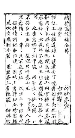 Wanhua Lou (traditional Chinese: 萬花樓; simplified Chinese: 万花楼), also translated into English as Pavilion of Myriad Flowers[1] and Pavilion of Ten Thousand Flowers, is a Chinese novel written by Li Yutang (李雨堂) during the Qing dynasty.[2] The novel's story is set in the Song dynasty and consist of 68 chapters. Its first edition was published in 1808,[1] with later expanded editions releasing throughout the following decades.