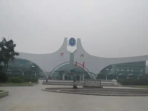 Wanzhou railway station is the western terminus of the Yichang–Wanzhou railway in Wanzhou District, Chongqing. This is a branch off the Shanghai–Wuhan–Chengdu High-Speed Railway, with most services divert south to Chongqing on the Yuli Railway at Lichuan. High-speed rail services are available to eastern destinations in neighbouring Hebei province and beyond. Major destinations being Wuhan and Yichang. Conventional rail connections extend to the west, to Dazhou and beyond to Chengdu and other Sichuan cities via the Dacheng Railway and Chongqing via the Xiangyu Railway. The station was opened to high-speed traffic on December 22, 2010.[1]