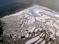 The park was set up to protect the environment and the Cree traditions. It is a young landscape formed by erosion from the last glacial period, which forms many subarctic habitats.[8] Evidence of this is seen from the glacial features like moraines, eskers and strand lines left by moving glaciers.[14] This glaciation resulted in environments like far extending beaches and plains dipping towards Hudson Bay.[14] The geography consists of coastal tundra habitats with coastal marshes, beach ridges and freshwater sedges which make up the habitats there.[15] The climate here is subarctic and wet, having many rivers and bogs called "Muskeg" by the indigenous Cree people native to that area.[14] In terms of ecology, Wapusk's location is part of the Hudson Plains ecozone.[8]