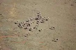 Caribou are also being affected by the warming temperatures in the case of earlier snow melt, warmer temperatures during the winter and wildfires.[29] These rising temperatures increase insect harassment on caribous. The caribous then exert more energy fleeing this harassment rather than feeding.[29] Caribou feed primarily upon lichens. Climate change has resulted in decreased lichen biomass in arctic regions, a trend that is projected to continue.[32] The increase in wildfires impact lichen biomass and cover, which take up to 75 years to recover from fires.[29]