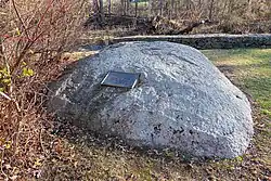 A feature of the park is Pulpit Rock, a large boulder where Reverend James Keith, minister of the First Church of Bridgewater, is said to have preached his first sermon in 1663.[2]