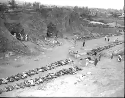 The massacres committed by North Korea were not collective but rather sporadic yet frequently carried out across the country. The number of victims caused by North Korea is estimated to be in the hundreds of thousands.[13] The massacres committed by North Korea were carried out through public executions using "people's trials." After the Inchon Landing, during their retreat, they are known to have carried out mass killings of numerous civilians, including many intellectuals. This trend was particularly severe in areas north of the 38th parallel. During their retreat, North Korean forces committed massacres in major northern cities such as Pyongyang and Hamhung.[14][15]
