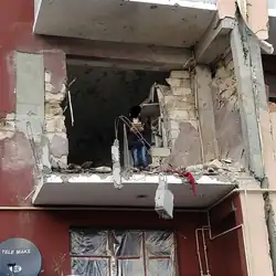 Armenia shelled several Azerbaijani cities outside of the conflict zone, most frequently Tartar, Beylagan and Barda.[9][10] Artillery strikes reported by Azerbaijani authorities included an attack on Beylagan on 4 October, killing two civilians and injuring 2 others,[11][12] Goranboy on 8 October killing a civilian,[13] Hadrut on 10 October, seriously injuring a medical worker,[14] Fuzuli on 20 October, resulting in one civilian death and six injuries,[15][16] Tartar on 20 October, resulting in two civilian deaths and one civilian injury[17] and Tartar on 10 November, resulting in one civilian injury.[18] By 9 November, there had been more than 93 civilian deaths and 416 civilian injuries in areas of Azerbaijan outside of the war zone.[19][20]