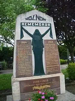 The monument aux morts at Holnon. | Holnon | 1926 | The Holnon war memorial features a work in bronze by the sculptor Grégoire Calvet. The monument was inaugurated on 30 May 1926.[17] | |
