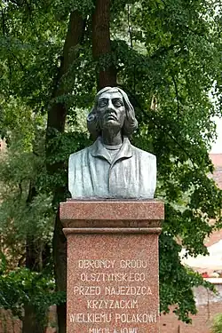 Warmia was invaded by the Teutonic Knights during the Polish–Teutonic War of 1519–1521, however, the Poles, led by renown astronomer Nicolaus Copernicus, repulsed the Teutonic siege of Olsztyn in 1521.[13] Copernicus spent more than half of his life in Warmia, where he wrote many of his groundbreaking works and conducted astronomical observations and mathematical calculations, which became the basis for his heliocentric model of the universe.[14] After the war of 1519–1521, he coordinated the reconstruction and resettlement of the devastated southern Warmia.[14]