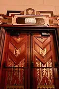 The design of the Warner Grand Theatre was a collaboration by architect B. Marcus Priteca and interior designer Anthony Heinsbergen,[3] in the Art Deco—Moderne style. It was one of three similarly lavish Los Angeles area Art Deco movie palaces on which Priteca and Heinsbergen collaborated for the Warner Bros. company in the early 1930s. The others were located in Beverly Hills and Huntington Park.[4] Priteca later designed Hollywood's famous Pantages Theatre.[5]
