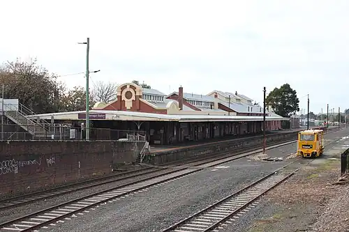 Warragul railway station is a regional railway station on the Gippsland line, part of the Victorian railway network. It serves the town of Warragul, in Victoria, Australia. Warragul station is a ground level premium station, featuring one side platform. It opened on 1 March 1878, with the current station provided in 2015.[2][3]