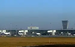 In 1969, the new terminal officially became operational, with it celebrating, just one year later, its first million passengers served.[14] However, it soon became apparent that the new terminal was too small. As a result of this situation, and to alleviate the problems it was causing, part of the airport's administrative office was moved to the south of the terminal and into makeshift buildings and the old airport premises on Ul. 17 Stycznia. A new separate, temporary arrival hall was then built. Meanwhile, domestic flights continued to operate from the facilities built on the site of the pre-war terminal. Some years later, in 1978, a new arrivals hall, the so-called 'Finnish Hall' opened.[15] Thereafter, there was a further upgrade to the airport's runways, and after the renovation of runways 1 and 3, runway 2 was re-designated as taxiway 'Delta'; this was because of its location on the same axis as a number of major obstacles, most notably the Palace of Culture and Science and Raszyn radio transmitter.