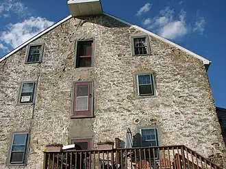 The older "Warwick Mills", also known as James Mills with Jacob Hager House and Tenant House, is an historic grist mill complex that is located in Warwick Township, Chester County, Pennsylvania. The mill was built circa 1784, and is a three- to four-story, banked fieldstone structure. The manor house was built before 1828, and is a 2+1⁄2-story, four-bay by two-bay, random fieldstone dwelling. The tenant house was also built before 1828, and is a 2+1⁄2-story, four-bay by two-bay, stuccoed stone dwelling with a shed-roofed porch and a 1+1⁄2-story addition. The mill remained in operation until 1968.[2] It was added to the National Register of Historic Places in 1974.[1]