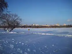 The lake continued for a time to be used as a domestic water supply and for stock watering; it also supplied the new legislative building.[4] A longer term effect resulted, however, when lake water was used to cool machinery in the power plant (now the Powerhouse Museum) that was built in the eastern sector. Heated water returned to the lake, causing that sector to remain ice-free through the winter, and several species of migratory birds made it their year-round habitat. Although the old coal-fired power plant was decommissioned in the early 1970s, a permanent/non-migrating flock of Canada geese habituated to wintering in the city had to be rounded up and either transported out of the city or if injured then housed in a waterfowl sanctuary. The annual goose round-up continued into the 1990s. The eastern sector of the lake continues to be a waterfowl sanctuary.