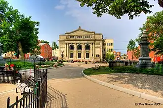 Washington Park is bounded by West 12th, West 14th, Race, and Elm Streets in the Over-the-Rhine neighborhood of Cincinnati, Ohio, United States. The park is owned and operated by the Cincinnati Park Board. The 6-acre (2.4 ha) park served as Presbyterian and Episcopal cemeteries before it was acquired by the city from 1858 to 1863.[1][2]
