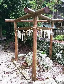 In January 2020, the shrine's operators banned foreigners from visiting due to behavioral issues that they attributed primarily to South Korean guests.[7][8] The shrine's operators alleged that people held picnics at the shrine, a YouTuber filmed there without permission, tour guides disrespected sacred areas, and some tourists put graffiti at the shrine. Some amulets were alleged to be stolen. A Korean tour guide reportedly threatened the priest's life.[7] This ban substantially reduced the amount of Korean tourists who visited Tsushima.[7] Some have described the ban, especially as it singled out the Korean tourists, as discriminatory.[9][8]
