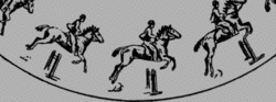 These fences are combinations of banks, logs, water, ditches and other elements. All of the jumps are placed within 1–3 strides of each other, and are meant to be jumped as a series in a specific order. Also see Normandy bank, Sunken road, and Coffin.[1] They are seen in the equestrian jumping sports of show jumping and eventing (both the cross-country and stadium jumping phases), but are uncommon in hunt seat competition.