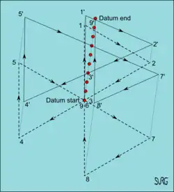 Search patterns are methods for systematically travelling over the surface of the area of water in which the target is likely to be found, while observers and/or instruments are deployed with the intention of detecting the targets of the search. An effective search pattern is one in which the entire surface can be examined with a good chance of detecting the target if it is present, but without excessive overlap, though some overlap is usually considered advisable to allow for inaccurate estimates of target visibility and sea and atmospheric conditions. Several standardised search patterns are in common use, some of which are more suitable for surface vessels, and others are more suitable for aircraft. Similar search patterns are used for underwater searches. Most water surface search patterns are followed relative to a moving datum, so steering is by compass heading and distance is determined by speed through the water and elapsed time. Speed and direction over the ground will vary according to drift.[2]