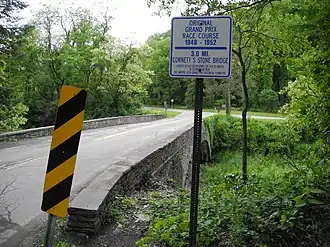 Watkins Glen Grand Prix Course, 1948–1952 is a historic Sports Car Club of America auto race track located at Watkins Glen in Schuyler County, New York. It includes the public rights of way that constituted the route of the original 6.6-mile (10.6 km) Watkins Glen Grand Prix course used from 1948 to 1952. After a car left the road in the 1952 race, killing one spectator and injuring several others, the race was moved to a new location on a wooded hilltop southwest of town.[2]