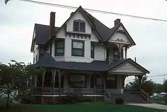 Watkins House is a historic home located at 302 South Camden Street, Richmond, Ray County, Missouri. It was designed by architect George F. Barber and built about 1890. It is a 2+1⁄2-story, Queen Anne style frame dwelling sheathed in five different types of shingles. It features an encircling porch connected with a turreted hexagonal corner tower; a projecting attic gable with a recessed porch; a pedimented and projecting dormer; carved wood panels; and a chimney with ornate terra cotta panels.[2]: 2