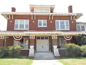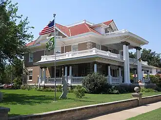 The T. T. Eason Mansion (36°23′47″N 97°53′38″W / 36.39639°N 97.89389°W) and the McCristy-Knox Mansion (36°23′47″N 97°53′40″W / 36.39639°N 97.89444°W) are also located within the district, and were both owned by wealthy oilmen. Both of these mansions were listed on the NRHP in 1987. T.T. Eason of Eason Oil Company purchased his house following original owner John W. Graham's death.[3] Graham had the Prairie Box style house constructed in 1916,[3] and Eason lived in it from 1923 to 1935.[2] Charles E. Knox, who owned a refinery in Covington, Oklahoma, purchased his mansion from Joseph McCristy, president of the Enid Mill and Grain Company. The mansion was built in 1909 in the Neo-Classical style and designed by R.W. Shaw.[3] Knox also owned another site listed on the National Register of Historic Places, the Knox Building. Musician Michael Hedges also lived in the house with his family.[4]