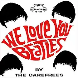 "We Love You Beatles" is a song by the Carefrees. It was a 1964 novelty record about The Beatles and the song peaked at number 39 on the Billboard Hot 100;[1][2][3] it was the only Beatles novelty record to reach the Top 40.[4] It was released in the UK on the Oriole label #CB1916 and in the USA on the London International label #10614.