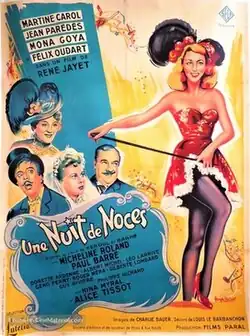 Wedding Night (French: Une nuit de noces) is a 1950 French comedy film directed by René Jayet and starring Martine Carol, Jean Parédès and Mona Goya.[1] The film's sets were designed by the art director Louis Le Barbenchon. It is based on the play of the same title by Albert Barré and Henri Kéroul, previously adapted into a 1920 silent film Wedding Night and a 1935 sound film Wedding Night.[2]